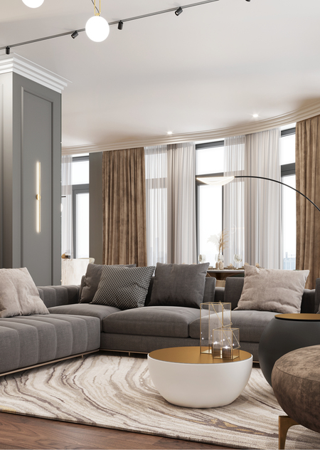 Дизайнеры Лаборатории НИУ ВШЭ разработали дизайн-код для разных типов квартир в престижном комплексе жилых апартаментов Sky View. Квартиры выполнены в светлых оттенках, гармонично подчёркивая статусность комплекса и его жильцов. Интерьеры выполнены из премиальных материалов, особое внимание уделяется фактурам и текстилю. Многообразие самодостаточных элементов, характерное для ар-деко, складывается в единую канву элегантности интерьера.