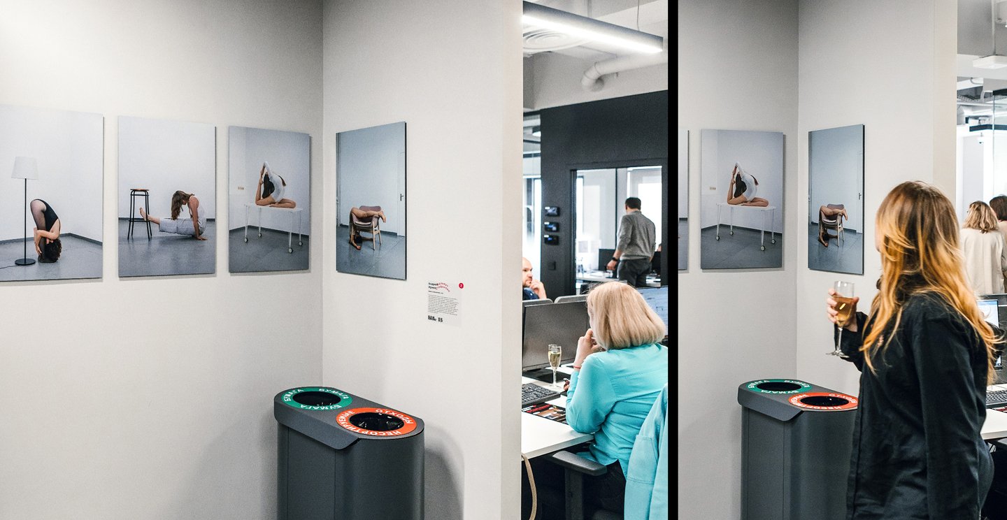 Выставка «Office of Gentle Thoughts and Playful Actions» — коллаборация между Ренессанс банком и HSE ART GALLERY. Экспозиция, расположенная в пространстве офиса, объединяет тонко перекликающиеся проекты студентов, в которых исследуются отношения между людьми и повседневностью.