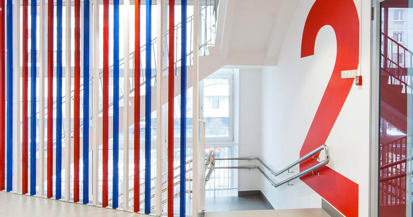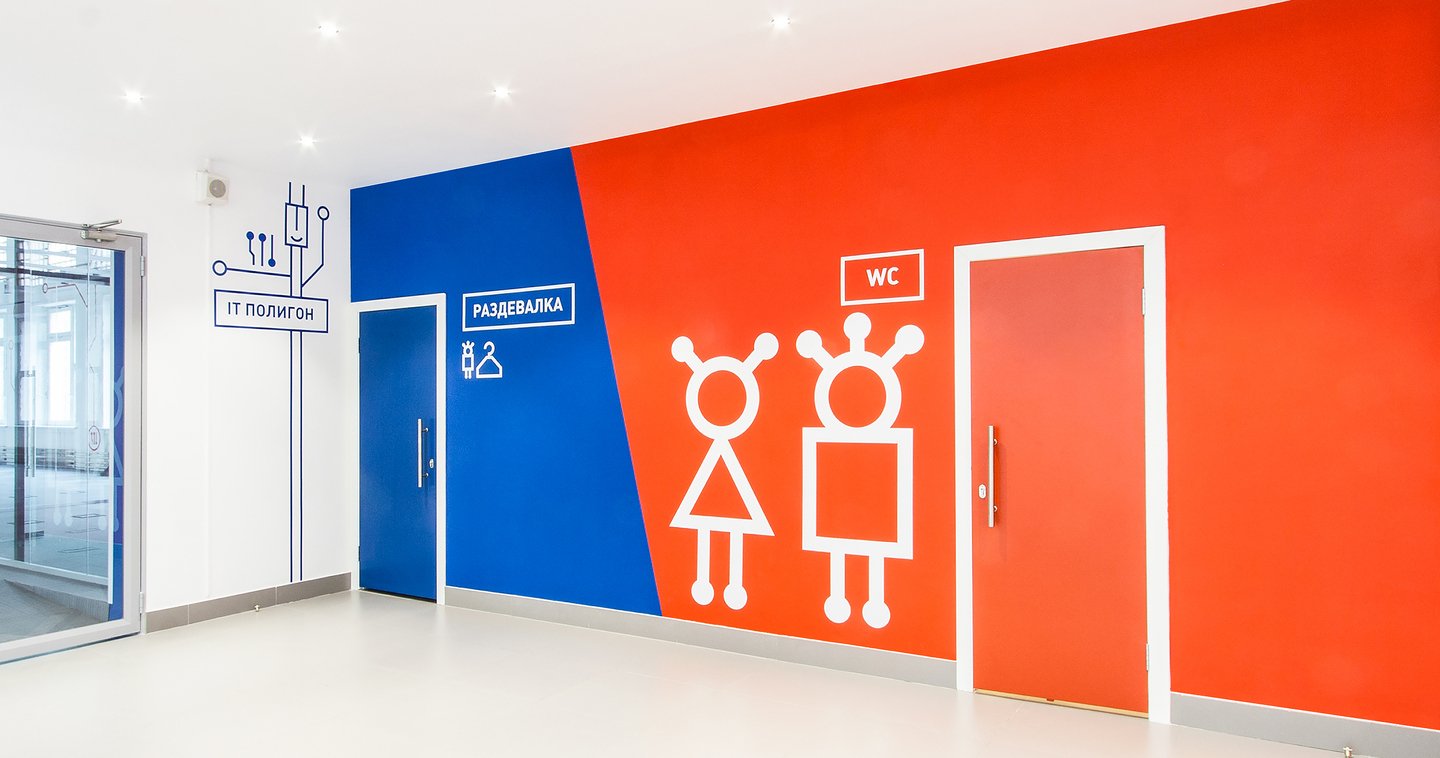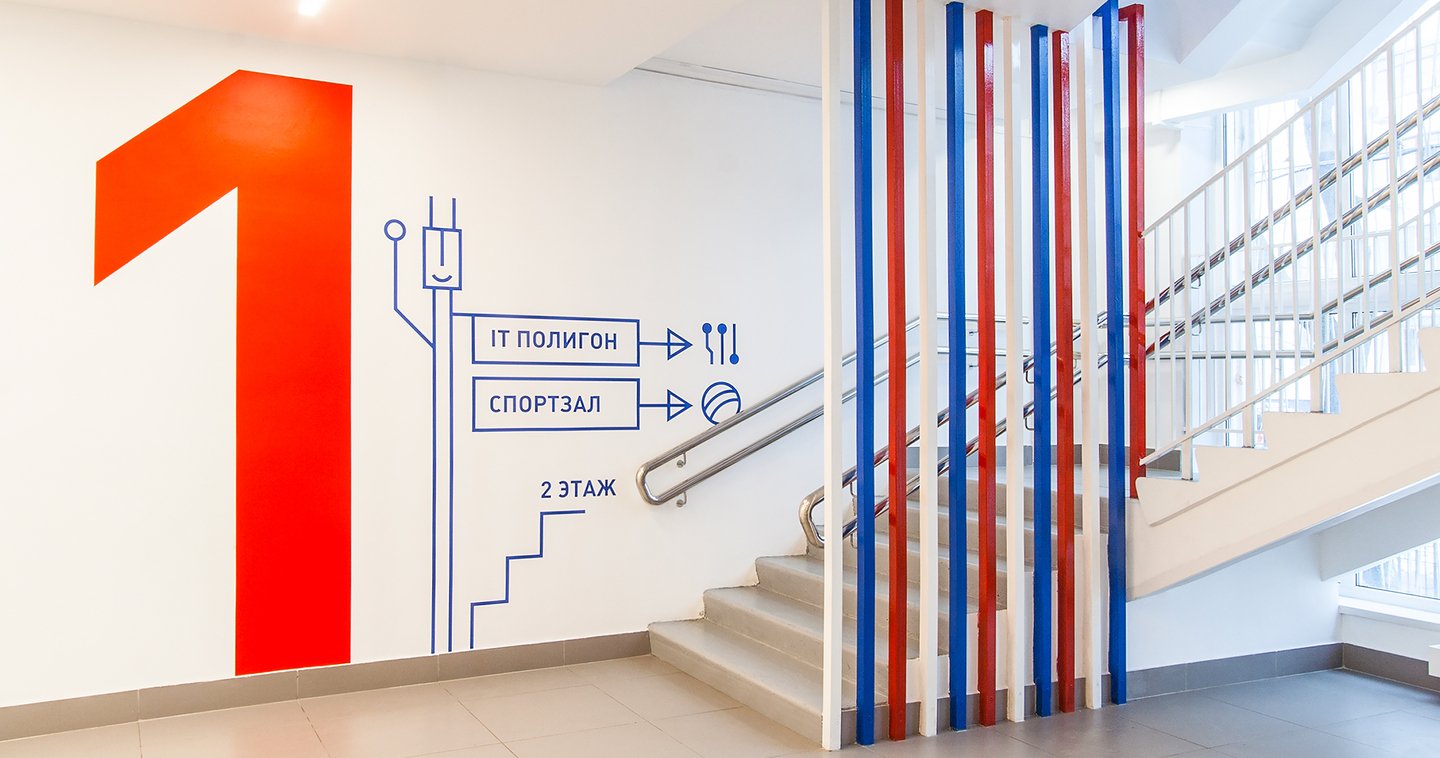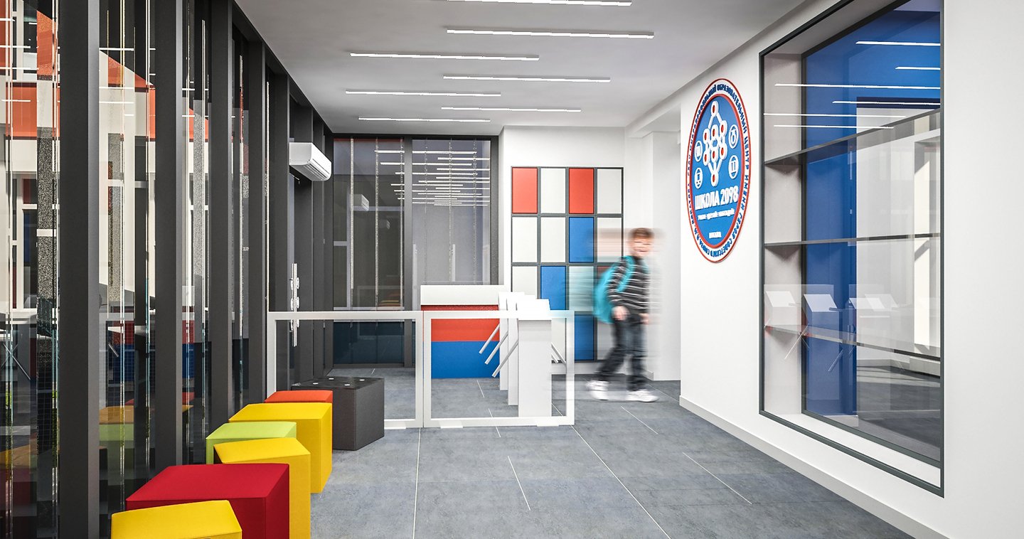 Проект по созданию новых интерьеров и навигации для Школы № 2098. Важной задачей, стоявшей перед дизайнерами, было отражение специфики школы, создание узнаваемого образа, актуального и яркого.