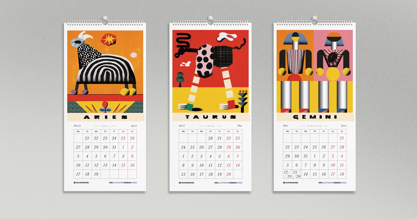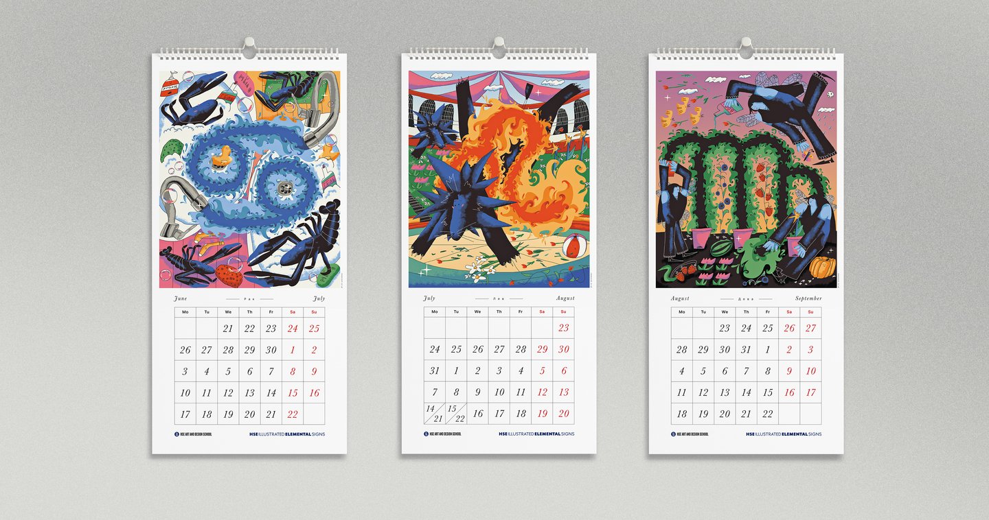 Примеры календарей. Иллюстрации Екатерины Тертычной, Алины Примаковой